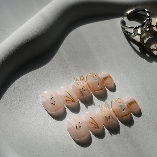 Gold Butterfly Blush | Premium Press on Nails